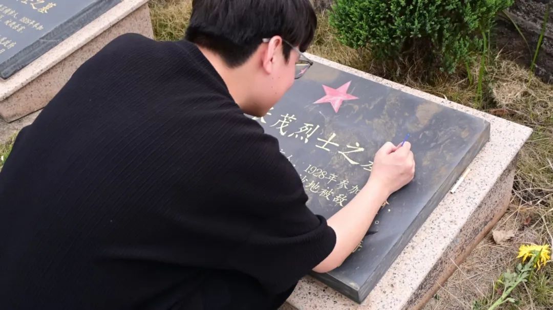 完成献花仪式后,学生代表们又来到纪念碑前。他们手持柔软的拂尘,轻轻扫去碑上的尘埃,动作轻柔而专注,仿佛生怕惊扰了长眠于此的英烈。拂尘过后,便开始进行描金与添红。只见他们手持特制的工具,蘸取金粉与红漆,细致地为纪念碑上的字迹与图案勾勒描绘。在阳光的映照下,金粉闪烁着光辉,红漆鲜艳夺目,为纪念碑增添了几分庄严肃穆。每一笔描绘,都饱含着学生们对先烈的敬仰,对红色信仰的坚守,他们用这样的方式告慰英魂,确保革命信仰永不褪色,代代传承。