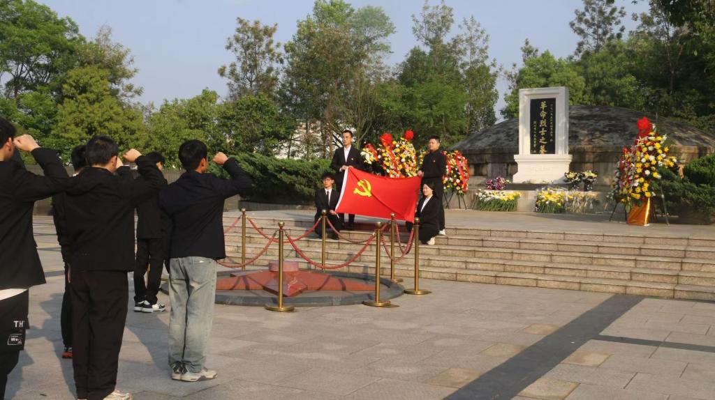 最后,全体同学怀着无比沉重与尊敬的心情,在英名墙前举行了祭奠仪式。仪式上,同学们首先宣读了祭词,表达对先烈们的深切缅怀和无限哀思;随后,全体人员向烈士墓深深鞠躬,并依次献上手中的鲜花,以寄托对先烈们的崇高敬意。在党旗下,学生党员们重温了入党誓词,铿锵有力的誓言在墓地上空回荡,彰显了他们继承先烈遗志、为共产主义事业奋斗终身的坚定决心。